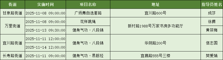 指导员进社区 | 新一周社区体育服务配送服务清单(11月8日-11月14日)来啦,一起健身吧~