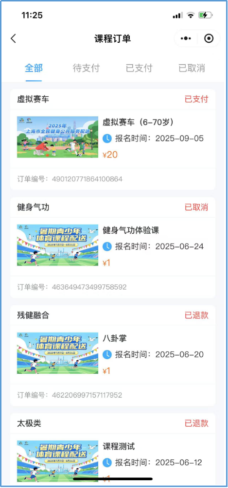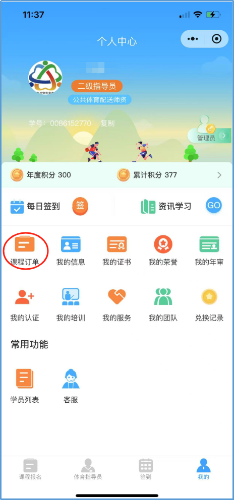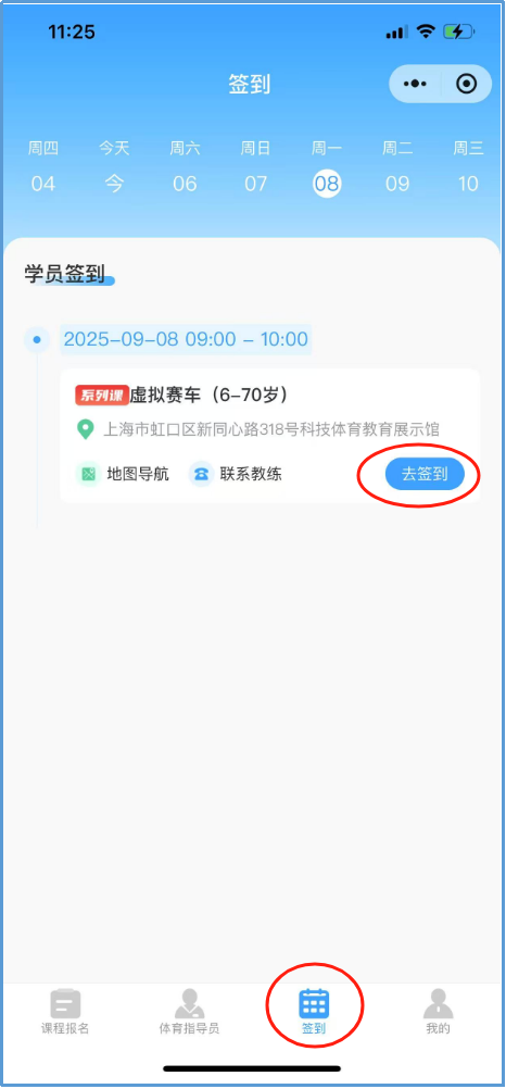 报名成功后,可通过“我的”—“课程订单”,查看课程报名信息。可通过“签到”页面查看待上课安排。