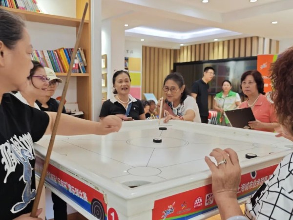 比赛现场,气氛热烈却不失温馨。参赛居民们手握木槌,眼神专注地瞄准目标,时而俯身调整角度,时而轻击掌控力度,每一次精准击球都引来周围阵阵喝彩。既有年过六旬的“康乐球老手”,凭借娴熟技巧稳扎稳打,展现多年积累的经验;也有初次尝试的年轻居民,在前辈的指导下慢慢摸索,虽然动作略显生涩,却满是认真与热情。大家不分年龄、不论水平,围绕着康乐球桌交流技巧、分享心得,原本陌生的邻居渐渐熟络,小小的党群服务站里,满是欢声笑语与和谐氛围。