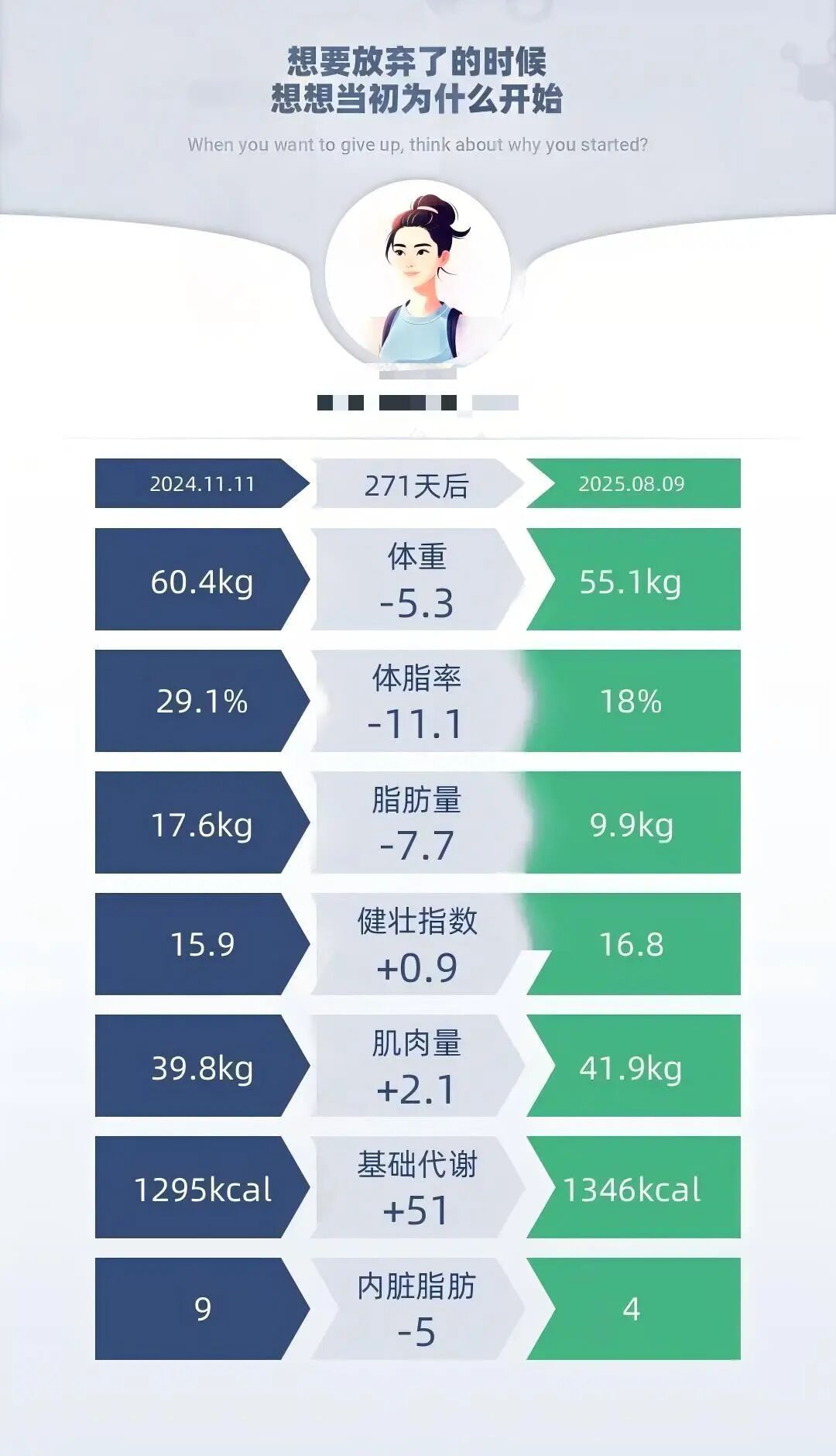 在杨浦区大桥街道市民健身驿站内,社会体育指导员为何女士量身定制并执行了为期三个月的运动计划。结果显示,她的体重从60.4kg降至55.1kg,体脂率从29.1%降至18%,腰臀比从0.9降至0.83。何女士在体重管理记录中写道:“想要放弃的时候,想想当初为什么开始。”这句朴素的自我激励,道出了许多参与居民共同的心路历程。