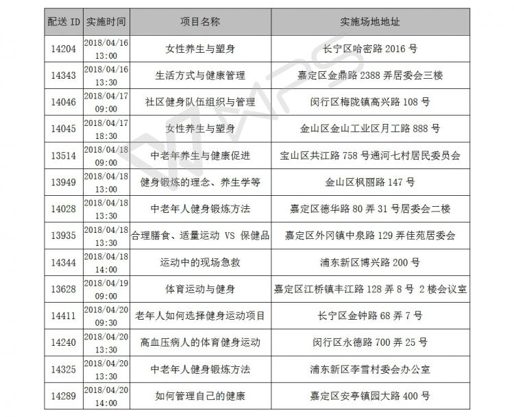社区体育服务配送一周一览(4.16-4.22)
