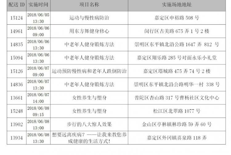 社区体育服务配送一周一览(6.4-6.10)