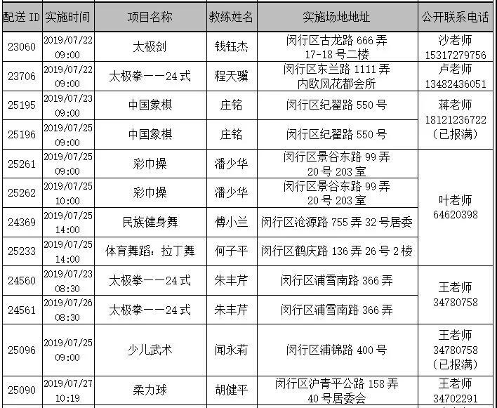 社区体育服务配送一周一览(7.22-7.28)