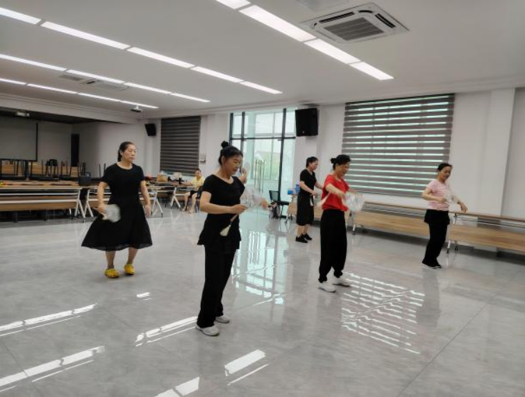 现场学员们手执彩扇,专注学习、积极模仿。尽管动作尚显生疏,但每个人脸上都洋溢着愉悦的笑容,气氛轻松而融洽。彩扇随乐起舞,时而如蝴蝶翩跹,轻盈灵动;时而似溪水潺潺,柔美连贯,成为一道流动在乡村生活中的靓丽风景。整场活动中欢声笑语不绝于耳,展现了村民团结友爱、共享文化生活的和谐画面。