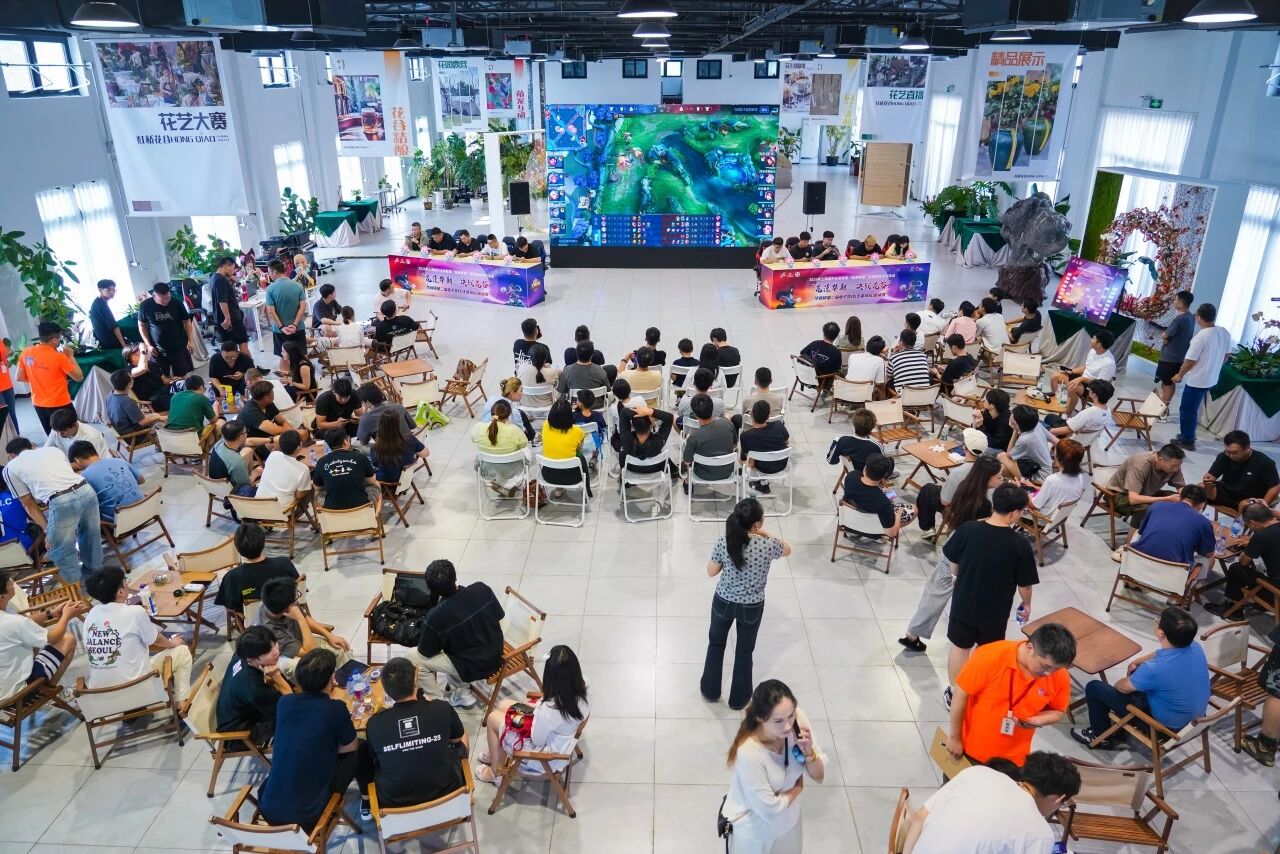 本届大赛巧妙选择在花漾荟客厅的自然生态景观中举办,将激情四射的电竞舞台与繁花似锦的生态环境相融合,创造了独特的沉浸式体验。花漾会客厅内座无虚席,参赛选手与观众们的热情与舞台周边植物的静谧形成鲜明对比,却又相得益彰。