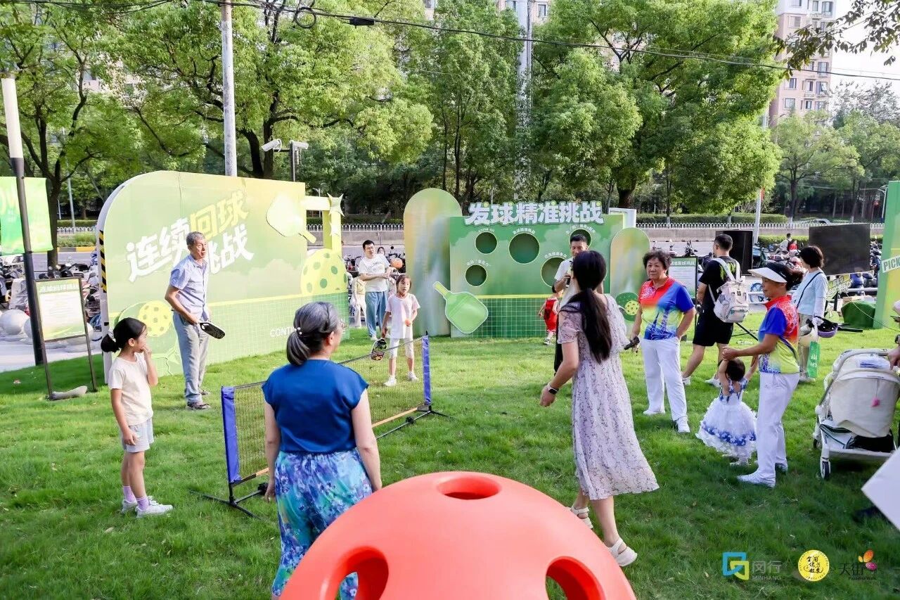 本次活动同步进行了视频直播与照片直播,现场设有多个打卡点与趣味互动区,吸引了不少亲子家庭组合晒出挥拍镜头。草坪上,不少年轻人交流着体验匹克球的感受:“我之前就一直想尝试一下匹克球,这次在附近打球看到这边有活动就想着过来参与体验一下。”;参与回球挑战的也不乏老年人,“相比起其他挥拍运动,匹克球的节奏稍慢,同时对我们的膝关节也更友好,很适合老年朋友锻炼。”