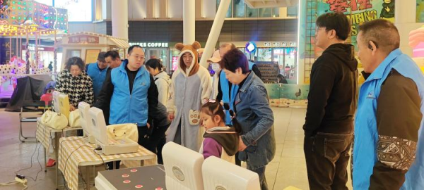 在大场镇繁华商圈的日月光中庭广场,“体质监测专区” 一亮相便成为焦点。鲜明的绿色背景板、齐全的监测设备,搭配社区指导员热情的招呼,瞬间吸引了逛街市民、亲子家庭驻足参与。“本来是陪孩子买玩具,没想到顺便做了个体测,还了解如何通过哪些运动提升健康,太惊喜了!”市民陈女士拿着报告,正认真听社区指导员讲解运动建议。