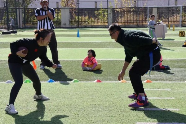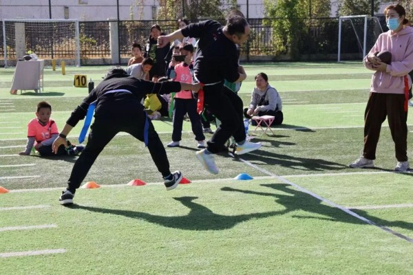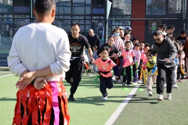 腰旗橄榄球赛场上,不仅有少儿组与幼儿组的激烈对抗,更增设成人组与亲子组赛事。爸爸妈妈们在赛场上全力以赴,孩子们在场边呐喊助威,亲子橄榄球赛更是温馨有爱,运动与陪伴交织,为童年留下难忘印记。
