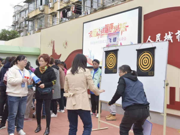 12月22日上午9点,运动会正式拉开帷幕,本次趣味运动会共设置8个比赛项目,既有传统的套圈圈、滚铁环、飞镖等项目,也有充满趣味性的飞盘九宫格。比赛现场,加油声此起彼伏,气氛紧张而热烈。胜利者脱颖而出时,现场响起了欢呼声。赛后,华浜新村居委对表现优异的团队和选手进行了表彰奖励。