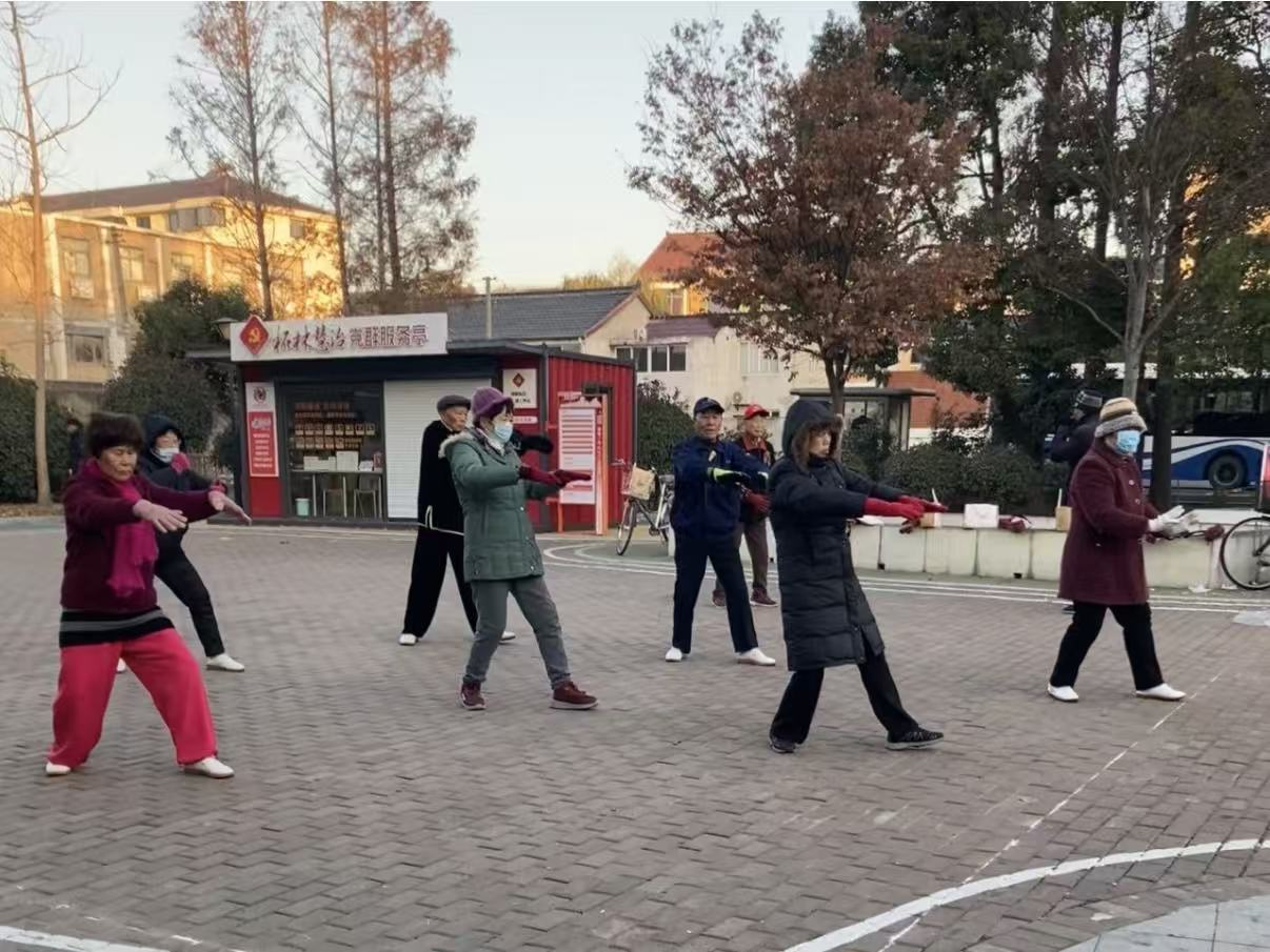 12月15日上午,胡桥居委在社区广场组织了一场太极健身活动,吸引了众多居民积极参与。