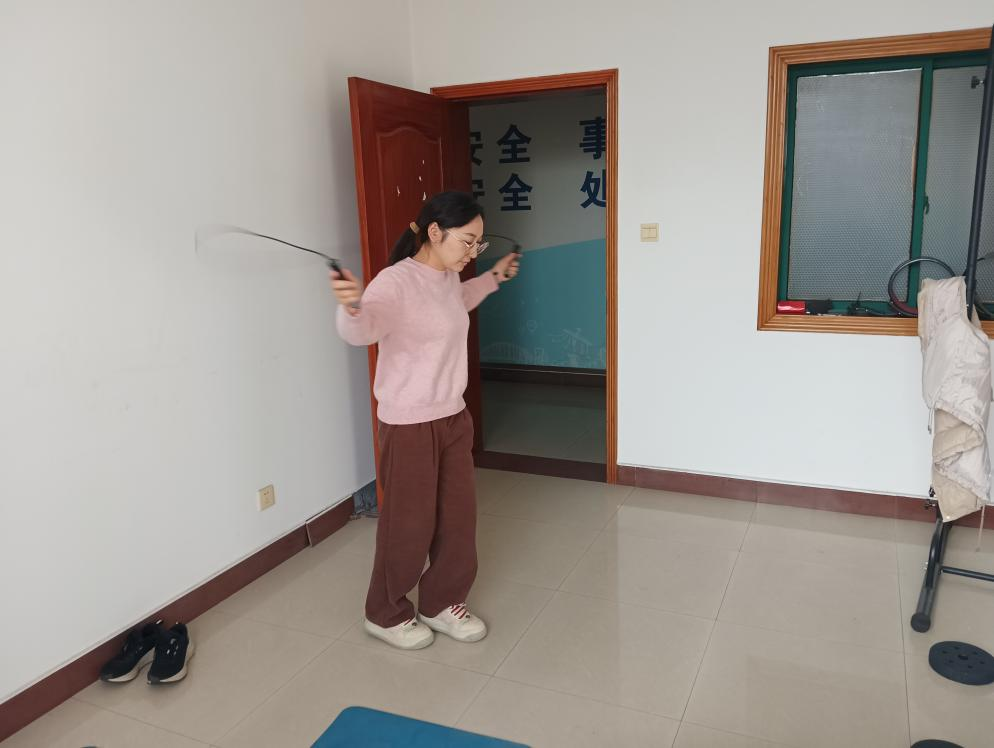 12月8日上午,华严村村民委员会三楼健身房内绳影翻飞、笑语盈盈,华严村工作人员首届“绳采飞扬,健康同行”秋日跳绳比赛在此活力启幕。本次活动以“日常健身”为主题,吸引了村两委成员、村工作人员、网格员等10余名工作人员参与,既展现了基层工作者的蓬勃朝气,又传递了“健康生活、快乐工作”的正能量。