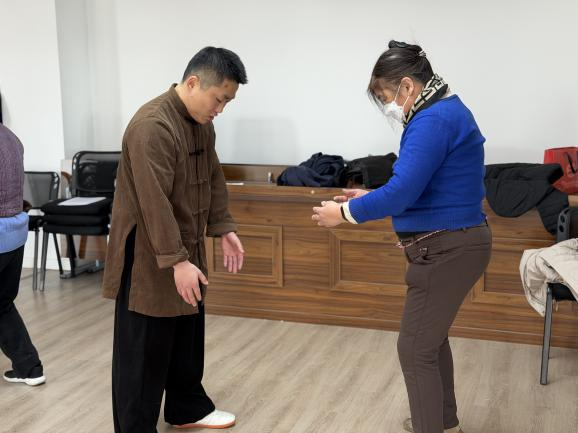 12月16日,为增进社区居民对太极拳的了解,增强其身体素质,淞南社区党群中心开展了一节太极拳培训。邀请了社会体育指导员李老师授课,李老师进行现场示范教学、针对每个动作进行一一拆解,详细解说。