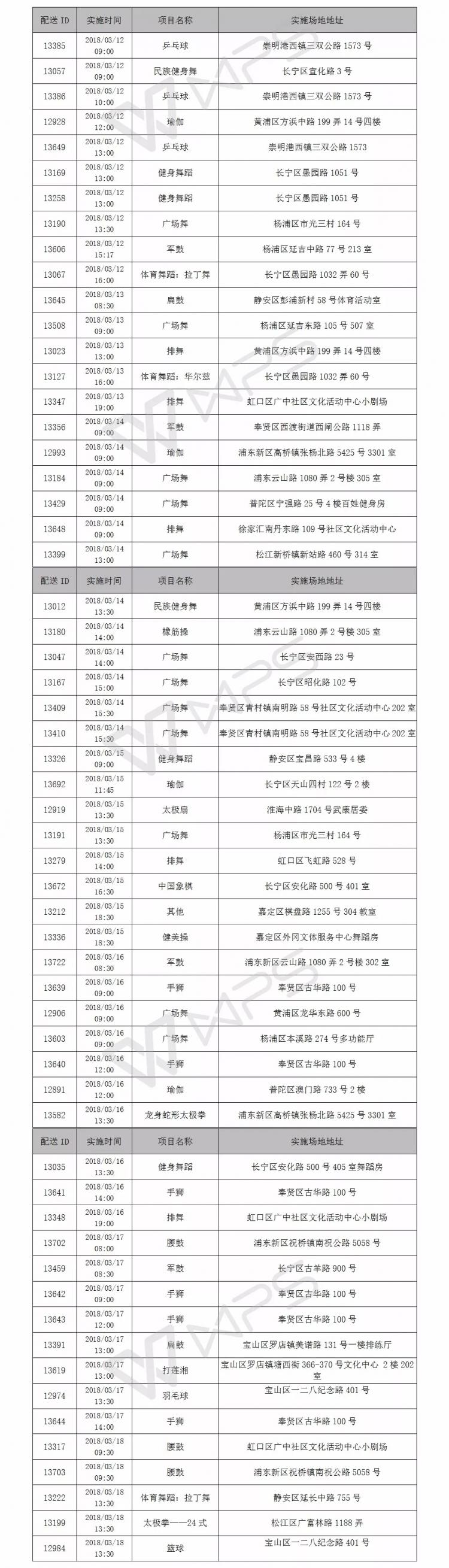 社区体育服务配送一周一览(3.12-3.18)