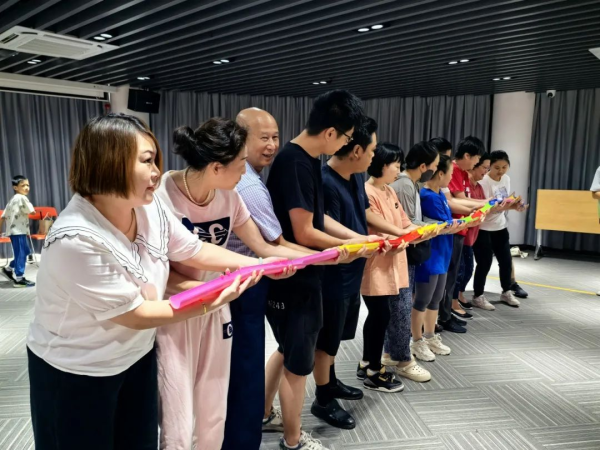暖场项目为“U型管接力”。家长与孩子“各自为营”,分为两队,通过自己手中的U型管接力把小球从起点运往终点。这个项目特别考验团队协作能力,也能帮大家迅速破冰。儿童组的选手们灵活、反应快,家长组的选手们沉稳、善谋划,双方都顺利完成了挑战。