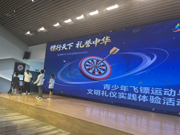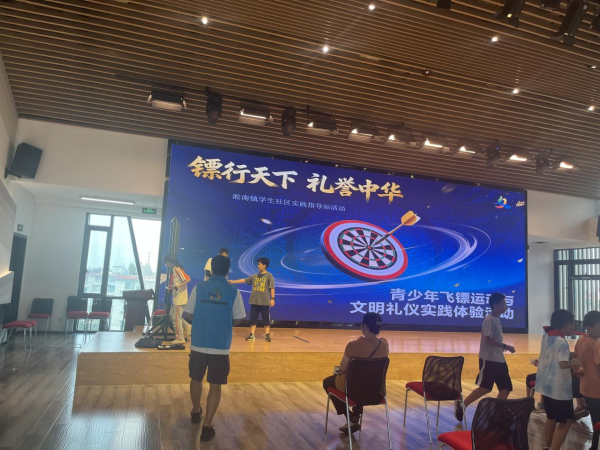 秋阳仍炽,热情不减。在中秋、国庆双节来临之际,9月26日下午,淞南镇学生社区实践指导站成功举办了一场别开生面的“镖行天下 礼誉中华”青少年飞镖运动与文明礼仪实践体验活动,将体育趣味与文明教育巧妙融合,为孩子们带来一场寓教于乐的身心成长课。