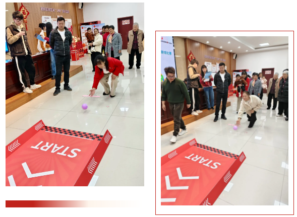 春日的午后,瑞和锦庭社区活动室里格外热闹。简易保龄球道前,参赛者们依次上场,俯身、瞄准、出手——每个人都神情认真。球缓缓滚向球瓶,全场目光随之移动。“砰”的一声,球瓶应声而倒,欢呼声瞬间响起。