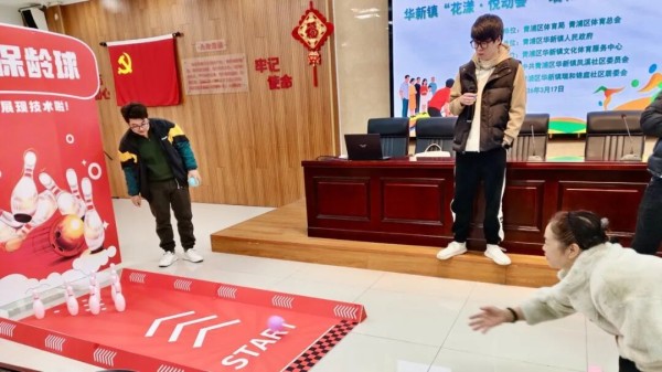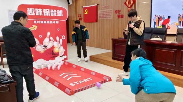 即便偶尔偏离目标,大家也总会报以善意的笑声和鼓励。“下一球加油!”——这样的声音在球道旁此起彼伏。每一次全中,都能引发一阵欢呼;每一次擦边而过,也会换来一片笑声。小小的活动室里,欢笑声、喝彩声此起彼伏,比窗外的春意更暖。
