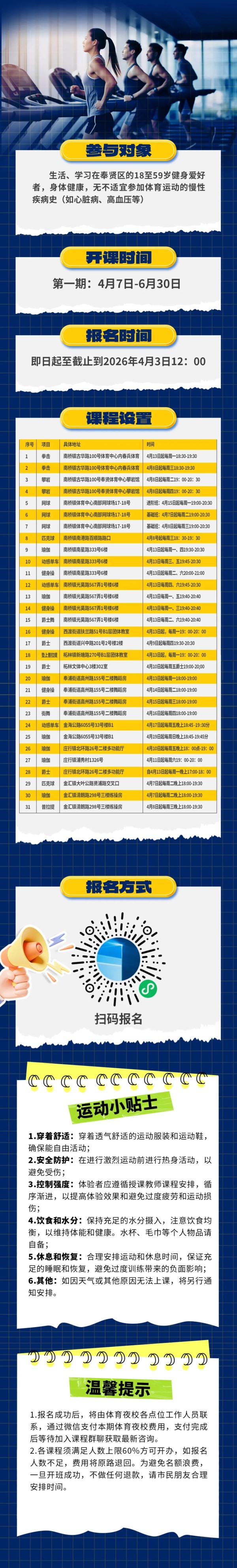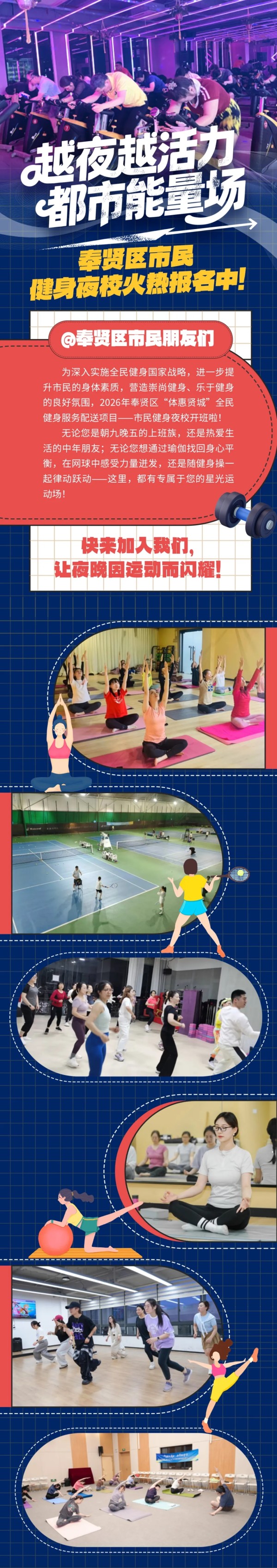 越夜越活力,都市能量场!奉贤区市民健身夜校火热报名中!