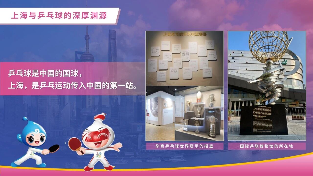 上海是国球沃土,百年乒乓薪火相传,从弄堂球台到国际赛场,从功勋名宿到新锐力量,一代代上海乒乓人拼搏奋进,铸就城市荣耀,也让乒乓运动深深融入市民生活、成为海派体育文化的鲜明标识。