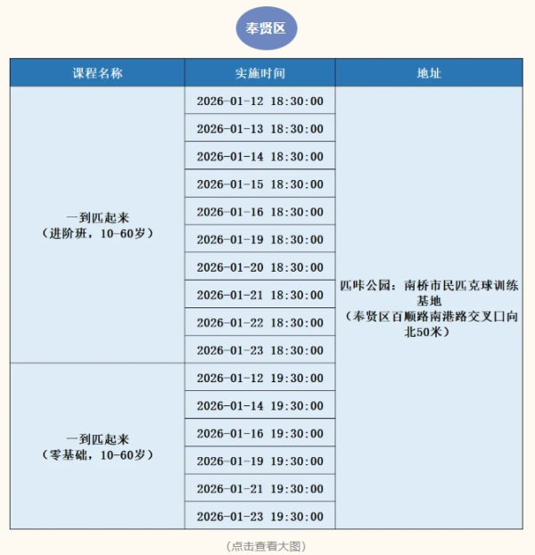 上海积极响应国家号召,持续创新配送服务模式,努力为市民提供更加均衡、可及、优质的全民健身服务配送。上海市体育局联合各市级单项体育协会组织开展全民健身公共服务配送站点创建工作,新一轮上海市全民健身公共服务配送线上报名已正式上线!下面是1月12日到1月25日的课程一览表,快来看看吧~