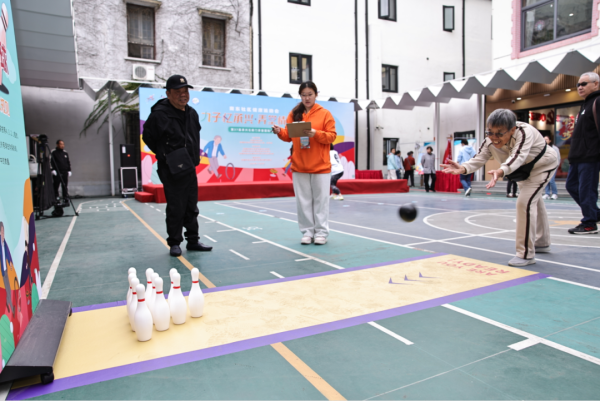 随着热切的期盼,第37届承兴石库门弄堂国际运动会正式开启。赛事延续了纯正的弄堂血脉,设置了抽陀子、滚圈子、打弹子、顶核子、掼结子等经典“九子游戏”,以及趣味保龄球等怀旧项目。