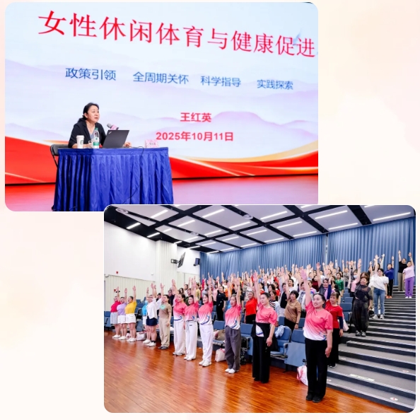 活动特邀多位领域内知名专家,围绕女性健康、休闲体育与社区运动策划展开深度分享。上海体育大学竞技运动学院党委书记、院长王红英以《女性休闲体育与健康促进》为题,结合案例,阐述了休闲体育对女性身心健康的多重益处,倡导以科学运动提升生活品质。