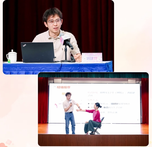医学博士、主治医师刘建党以《中医智慧守护女性健康》为主题,融合传统中医理论与现代医学实践,从经络调理、代茶饮到引导功法,为学员提供了实用易行的健康管理方案。