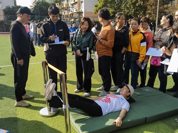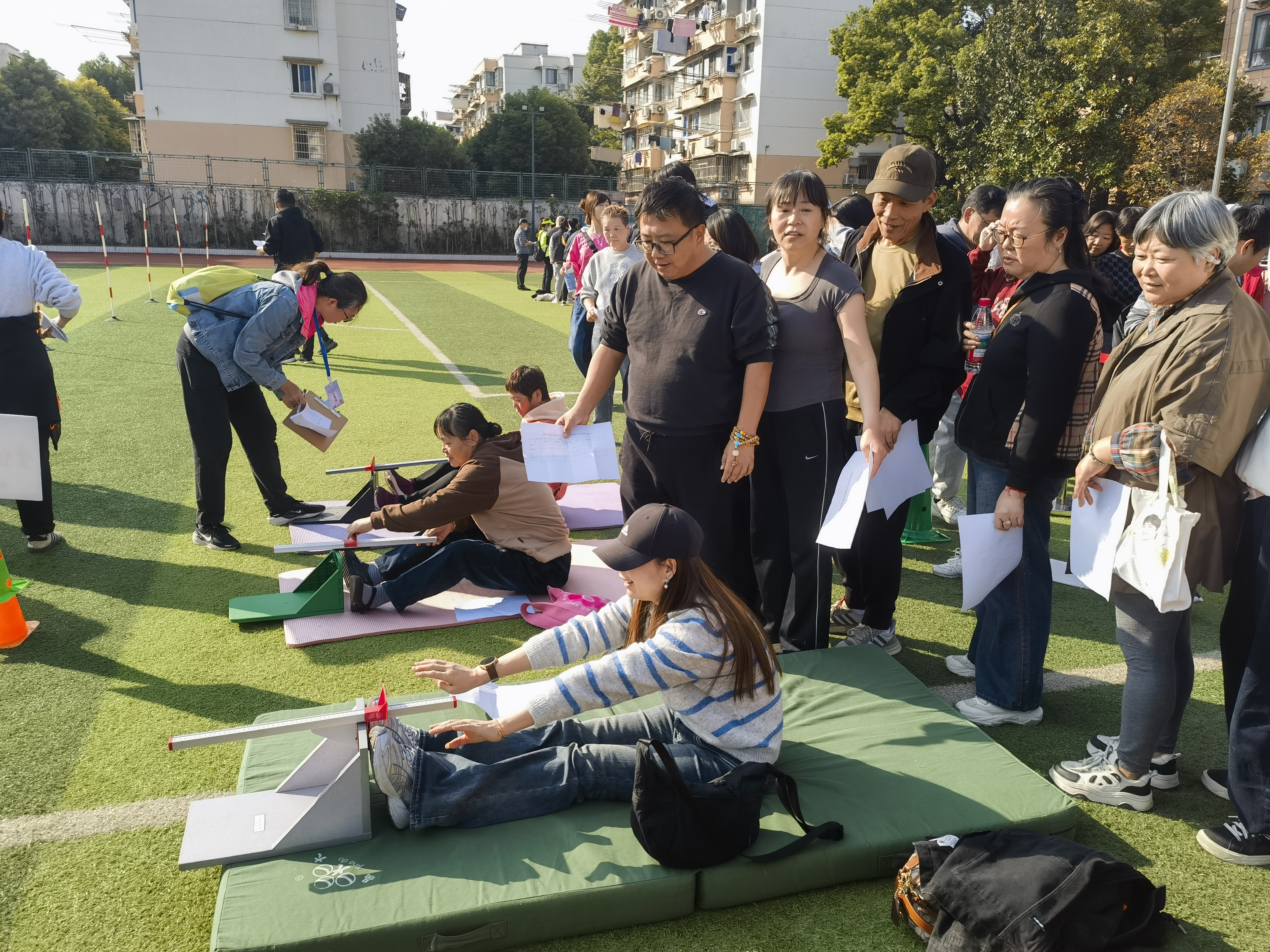 《国家体育锻炼标准》达标赛作为一项全民参与的体育活动,比赛根据参赛选手年龄分为青年组、壮年一组、壮年二组和老年组4个组别,每个组别分为男、女两类,设置30秒跳绳、立定跳远、800米、1000米跑、3000米快走、1分钟仰卧起坐、绕杆跑、掷实心球等运动项目,对应速度、柔韧、耐力、灵敏和力量五项身体素质大类。按照五项身体素质大类进行计分,最终确定参赛者的成绩。来自辖区居委会、学校、企事业单位等百余人参加了本次比赛,以“竞赛+体验”的形式,全面助力全民健身运动的发展。赛场上,选手们你追我赶、全力以赴,争取最好的成绩。加油声和助威声此起彼伏,充分展现了朝气拼搏、健康向上的运动热情。