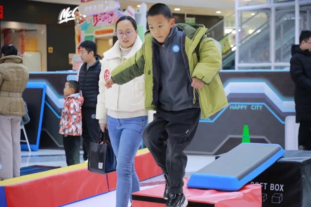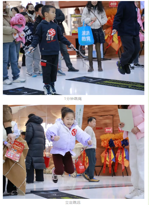 1分钟跳绳、立定跳远、坐位体前屈……小选手们全力以赴,家长们则在场边加油助威。“宝贝,再跳高一点!”“坚持住,你就是冠军!”赛场上,运动精神与亲子温情交织,成为冬日里最炽热的风景。