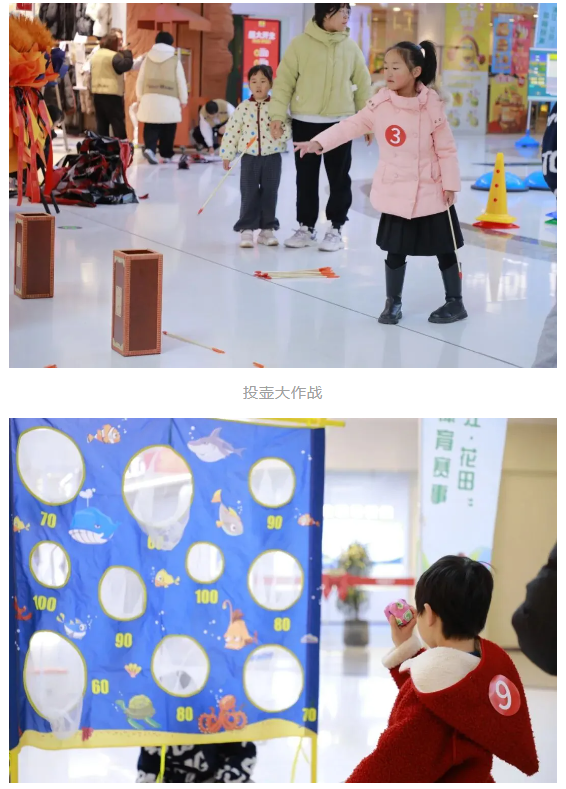 旱地冰壶、欢乐套圈、迷你高尔夫、沙包投投乐……六大趣味游戏区前排起长队!孩子们手持集章卡,穿梭于各个项目,家长们化身“队友”,共同完成挑战。