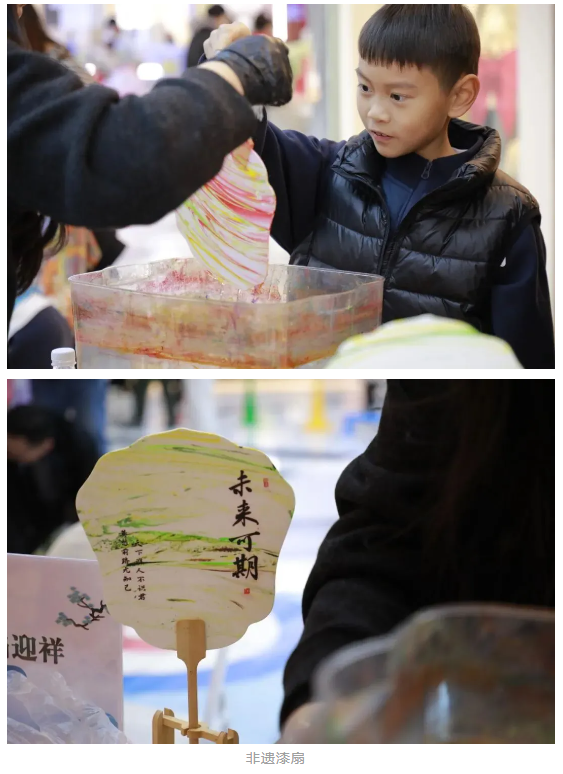 非遗漆扇制作、机器人互动……孩子们在动手实践中感受非遗魅力。“原来漆扇上的花纹是这样来的!”一位小朋友举着作品兴奋地说。传统技艺与科技元素的文化体验更添趣味。