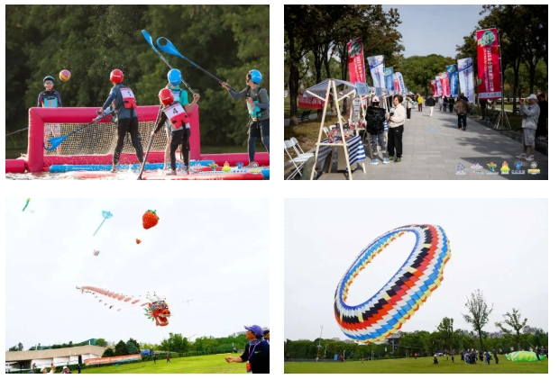 新江湾城文体公园以标杆赛事为引领,持续塑造品牌影响力,逐步构建特色鲜明的滨水标识。2025年成功举办8场品牌赛事,涵盖专业竞技、非遗文化、全民健身等多个维度,并积极探索以赛事推动“文旅商体展”多元融合。“2025年中国桨板球公开赛”作为首次在上海举办的国家级桨板球赛事,不仅呈现高水平水上竞技,更通过岸上市集融入非遗体验与体育科普等内容,吸引众多市民“跟着赛事来旅游”,实践了“赛事+”的融合模式;“2025年上海城市业余联赛‘杨浦新江湾城杯’长三角城市风筝邀请赛”则以传统技艺为展示窗口,搭建文旅体融合发展桥梁,使其成为连接人文的纽带,为非遗文化传承与群众体育注入新的活力。