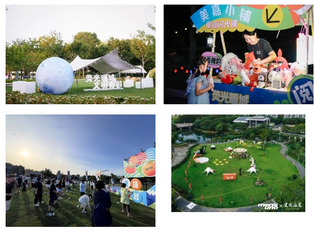 新江湾城文体公园以活动为载体,联动片区资源、激活滨水活力,全年围绕“乐活江湾,水岸秀场”品牌开展活动390余场,涵盖体育、文化、亲子、公益等多种类型,逐步构建起“全民共享、全季活跃、全域联动”的活动矩阵。通过“新城文化四季行”、“悦伴湾”新城艺荟系列展演、“荧光水陆空”文明实践活动、“橙柿派对·艺趣开FUN集”等一系列特色主题活动,持续营造可参与、可互动、可共享的滨水生活场景,让市民在自然、运动与人文中,体验内容鲜活、亲近友好的水岸生活。