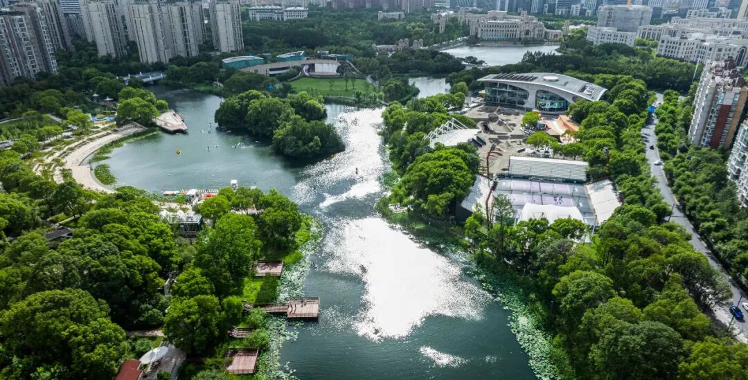 新江湾城文体公园坐落于上海杨浦北部,占地约17万平方米,依托独特的水域资源与优美的生态环境,规划了“文化、体育、公园、水上”四大片区。这里不仅是市民亲近自然的绿色休憩地,更是承载赛事、活动与日常休闲的多元平台,已逐步成为市民乐享运动、亲近自然、体验文化的滨水活力空间。