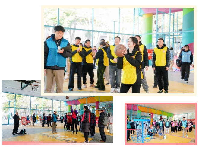 本次运动会精心设置了旱地龙舟、瑜伽球负重行进、板鞋竞速、定点投篮、掷准飞盘、旱地冰壶六大特色项目。各项目兼具趣味性、协作性与竞技性,巧妙融合生活场景与运动元素,在欢声笑语中激发团队合力,实现健身互动与协作共赢的双重目标。
