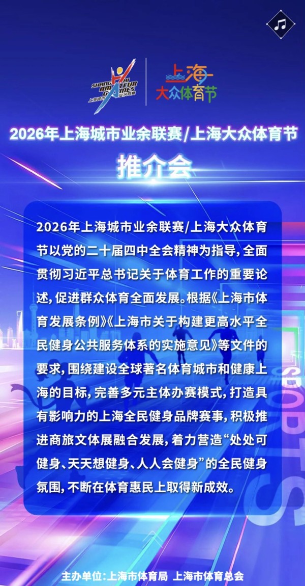 2026年上海城市业余联赛/上海大众体育节推介会邀请函请查收(内附报名通道)