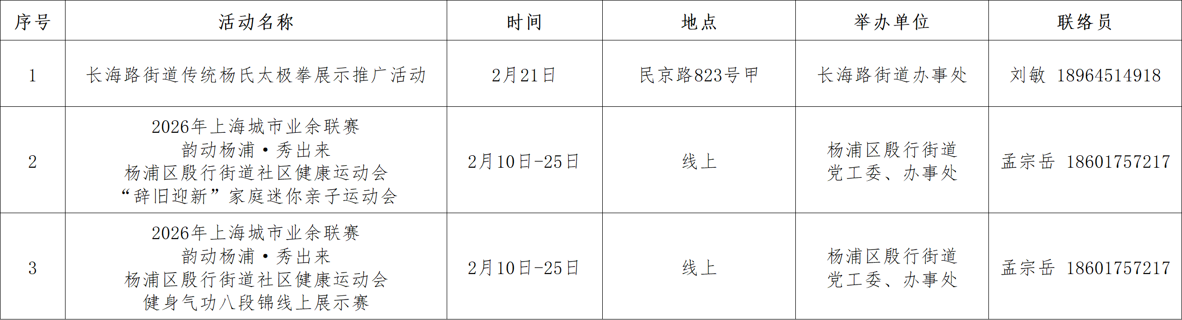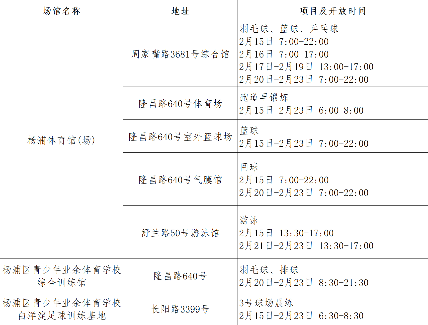 杨浦区多个场馆