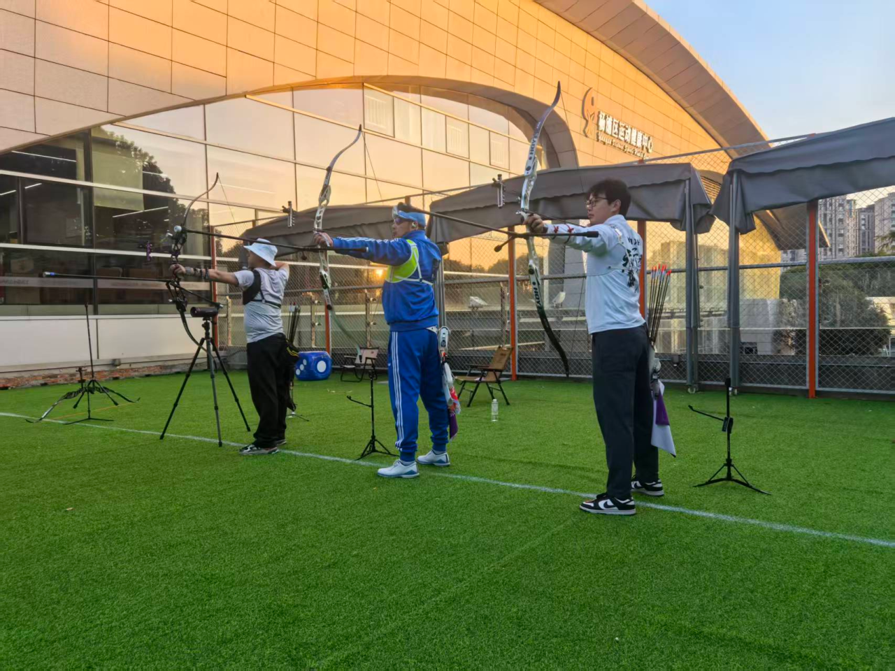 壁球馆内,银球飞速撞击墙壁发出清脆的“砰砰”声,球员们灵活跑位、挥汗如雨;射箭区内,市民爱好者屏气凝神,专注地瞄准靶心,箭矢离弦而出的瞬间尽显沉稳;健身房内更是人头攒动,跑步机上步伐不停,力量区里铁片碰撞声此起彼伏,市民们在器械上雕琢线条,用多巴胺点燃节日的激情。