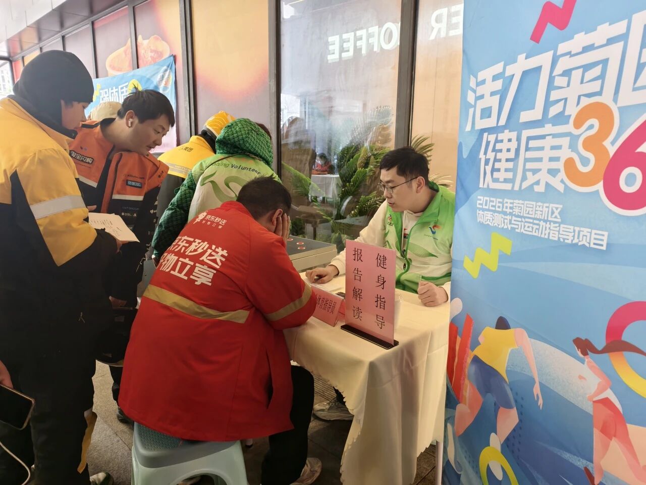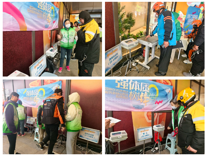 3月5日学雷锋纪念日当天下午,“强体质·树‘锋’尚”菊园新区科学健身指导系列活动体质测试志愿服务新就业群体专场,在信业购物中心暖心启幕。活动精准聚焦外卖员、快递员等新就业群体需求,将科学健身指导服务送到其日常接单、取件的工作现场,让平日里奔波在城市一线的服务者,成为被贴心关怀的服务对象,以志愿服务践行雷锋精神,为城市“奔跑者”送上健康保障。