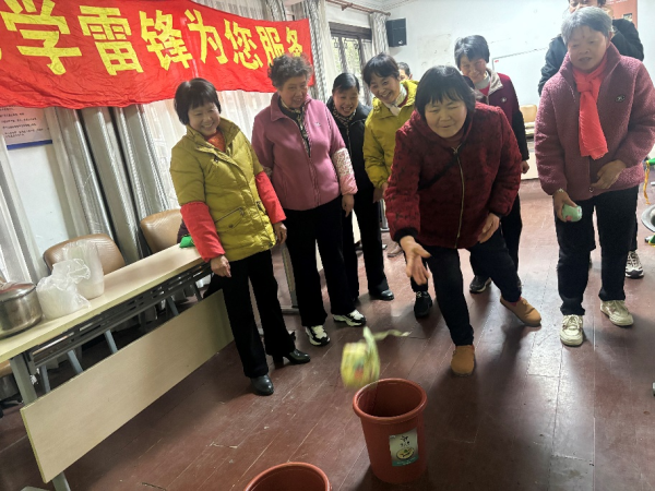 活动现场设立了趣味投掷区,规则简单明了。居民们站在规定线外,将手中的沙包投向距离不等的得分桶。沙包投掷的距离越远,桶上的分值就越高,这既考验眼力和手感的精准度,也需要一定的策略技巧。大家有的凝神屏气,有的相互加油鼓劲,每当有沙包精准落入桶中,现场便会响起阵阵掌声。一位参与活动的阿姨开心地说道:“仿佛回到了小时候,玩得特别开心,还能活动活动筋骨。”