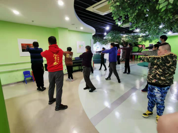 在此次活动中,俱乐部教练充分考虑阳光之家学员的身体特点,并结合春季养生的实际需求,精心量身定制了一套拉伸操。这套拉伸操节奏舒缓、动作简单、安全易学,从颈部舒展放松肌肉,到肩部环绕缓解紧张,再到腰部放松减轻压力,最后通过四肢拉伸全面舒展身体。整套动作循序渐进,不仅能帮助学员舒展筋骨、缓解身体僵硬,还能提升其柔韧性与协调性。