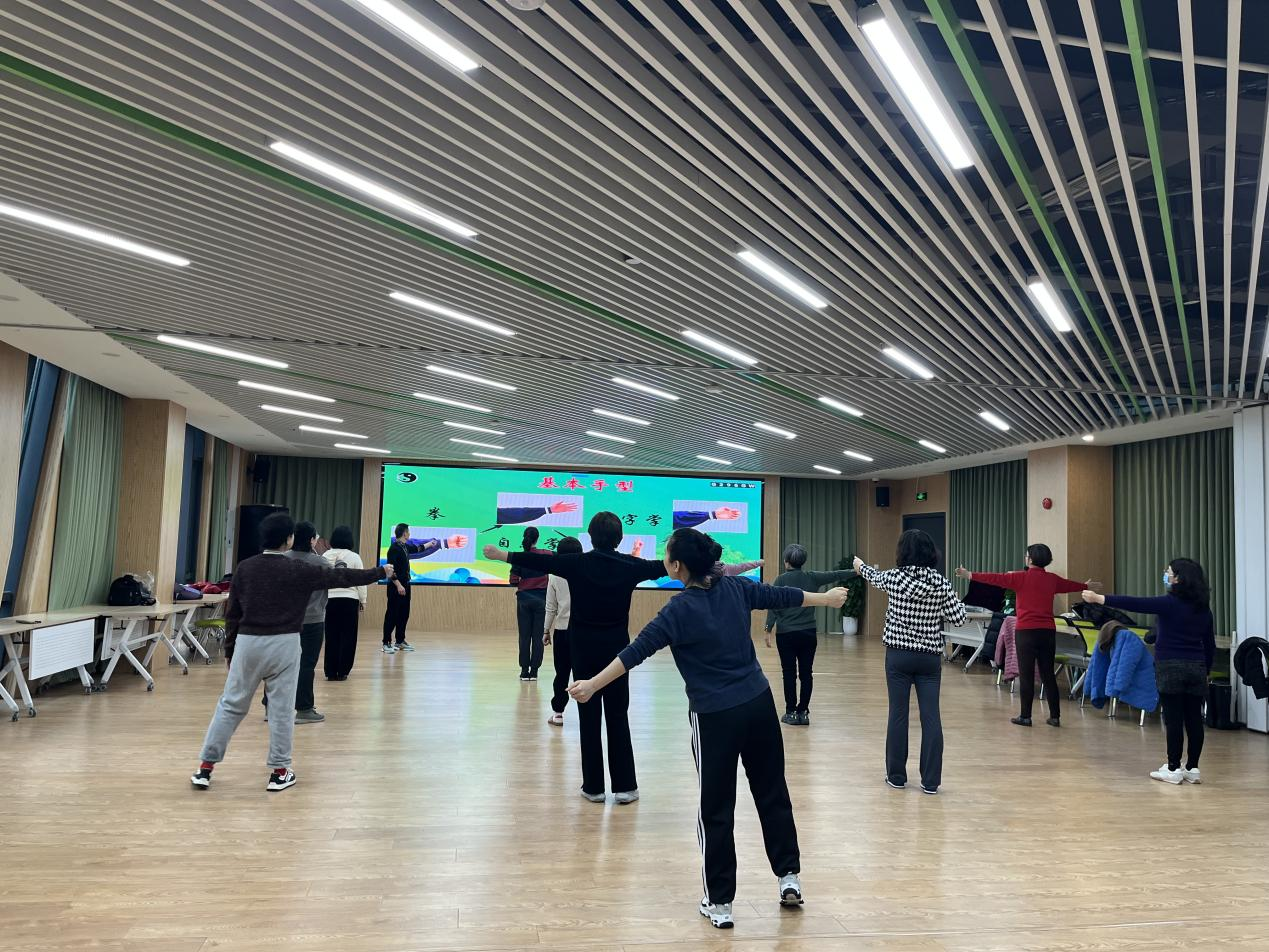 为深入学习贯彻党的二十大精神和习近平总书记关于体育的重要论述精神,弘扬和传承中华民族健身文化,倡导健康文明的生活方式,4月1日,在淞南党群服务中心市民健身驿站开设了健身气功八段锦课程,招募了近20名八段锦运动的爱好者参加。本次授课由国家级社会体育指导员刘政老师授课。刘老师为大家详细讲解八段锦动作口诀及要领,进行指导示范并带领大家反复练习。在刘老师一招一式的示范教学下,大家全身心投入其中,体会运动带来的健康和快乐。