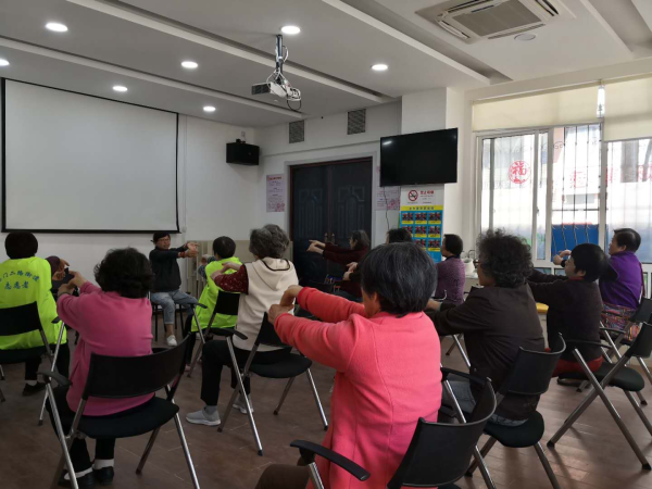 活动现场温暖宜人,石门二路社区体育健身俱乐部的教练充分考虑中老年人的身体机能特点,运用“理论科普 + 实操教学 + 一对一指导”的方式,围绕“小空间、大健康”这一主题,引导大家学习一乘一空间健身操、简易拉伸、脊柱放松等柔和的运动项目,让社区居民能够理解、学会并运用所学内容。这套健身操的动作舒缓且易于学习,强度恰到好处,充分考虑到了中老年人的身体承受限度,无需大型场地,在家就能轻松开展练习。它可以有效减轻因久坐、劳累导致的身体僵硬状况,缓解肌肉紧张,增强关节的灵活性。教练细致地示范每个动作的要点,逐个对居民进行手把手的教导,及时纠正不规范的姿势,保证每位老人都能掌握正确的锻炼方法。