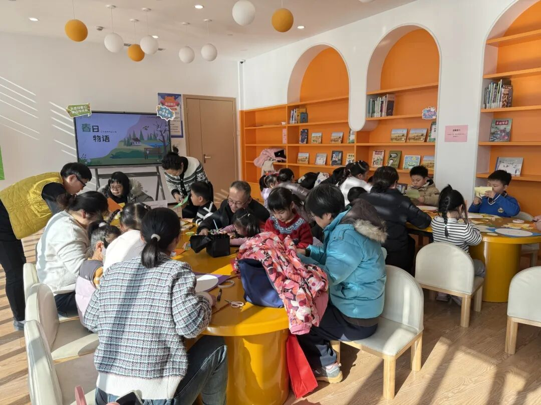 近日,淞南镇图书馆儿童友好阅读新空间内暖意融融、笑语盈盈,14组亲子家庭如约相聚,共同踏上“跟着绘本去旅行:24节气奇妙之旅”的首站——《立春·吃春饼》绘本共读与手工创作活动。