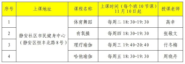 静安社区市民健身中心市民健身夜校报名开始啦!