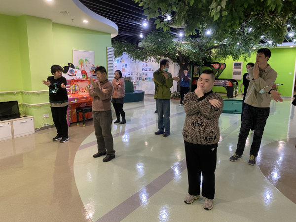 鉴于阳光之家学员们各自不同的身体状况及相对有限的运动能力,俱乐部特别设计了一套独具特色的舒展操。这套操节奏舒缓,动作简便,非常适合阳光之家学员进行锻炼。