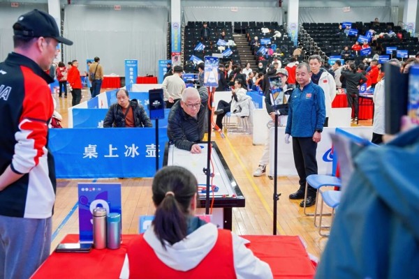 桌上冰壶球是冰壶运动的轻量化、桌面化复刻版,保留了冰壶的核心战术逻辑和竞技趣味,是兼具休闲娱乐、轻量竞技与社交属性的全民性桌面活动。为期两天的赛事中,24支桌上冰壶球代表队同台竞技,围绕女子单打、男子单打、混合双打、男子双打、女子双打、混合团体6个竞赛项目展开了激烈角逐,尽展风采。