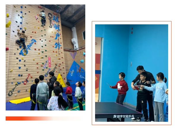 聚焦青少年寒假健身需求,攀岩课程配备全套专业安全防护装备,引导青少年在攀爬挑战中强化核心力量,提升身体协调性,磨砺坚韧意志;乒乓球课程从握拍、击球等基础动作入手,手把手教学,夯实运动根基,帮助青少年告别假期“宅家模式”,在挥拍间享受运动快乐,培养运动爱好,充实寒假生活。