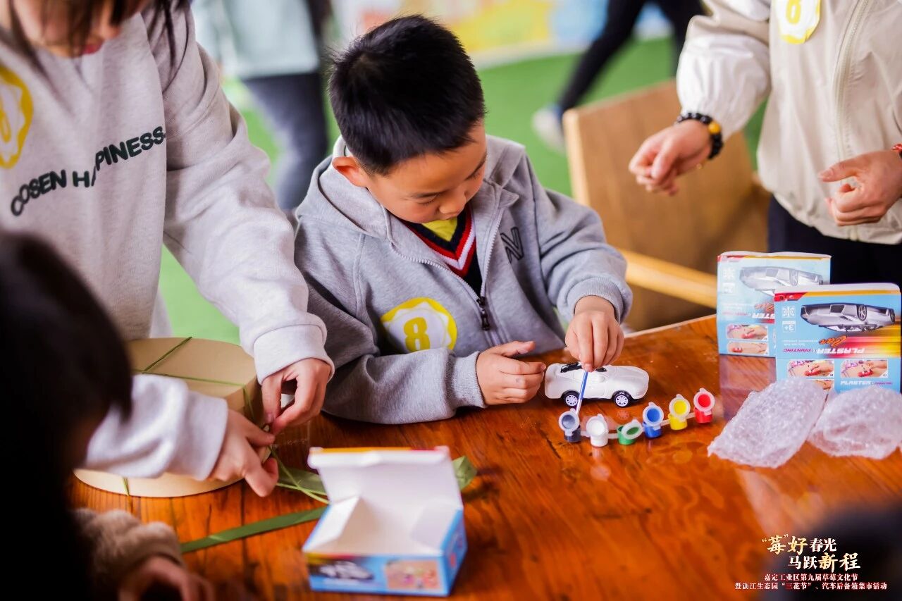 在赛车彩绘DIY区域,小朋友们化身为小小艺术家,他们拿着画笔,蘸着五颜六色的颜料,在赛车模型上尽情挥洒创意,每一辆彩绘完成的赛车,都承载着孩子的奇思妙想与亲子间的温馨时光。