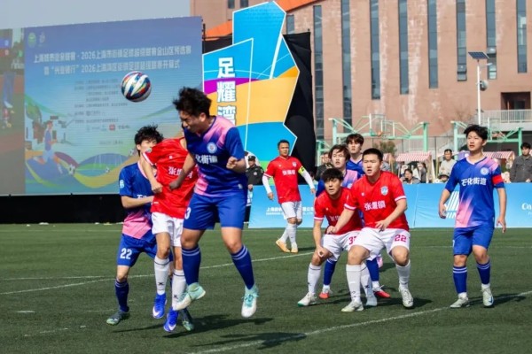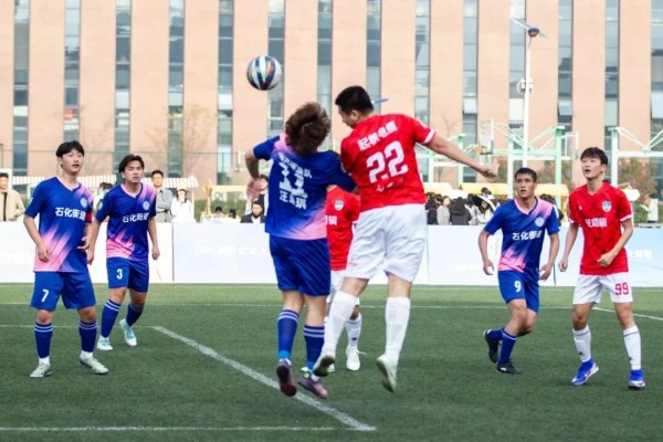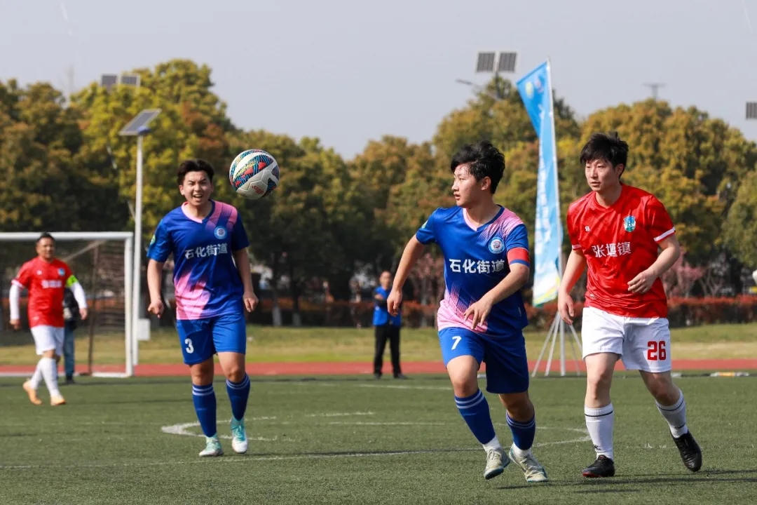 张堰镇代表队凭借主场之利,率先发起猛攻,锋线球员们状态神勇,突破重重防线封锁,拔脚怒射。石化街道代表队守门员严航强瞅准时机,一个飞扑将足球稳稳抱在了怀中,化解了这次极具威胁的进攻。赛场内的激烈对抗,牵引着观众席上千余名观众的心。看台上,两支队伍的助威团挥舞着旗帜,口号声、加油声此起彼伏。